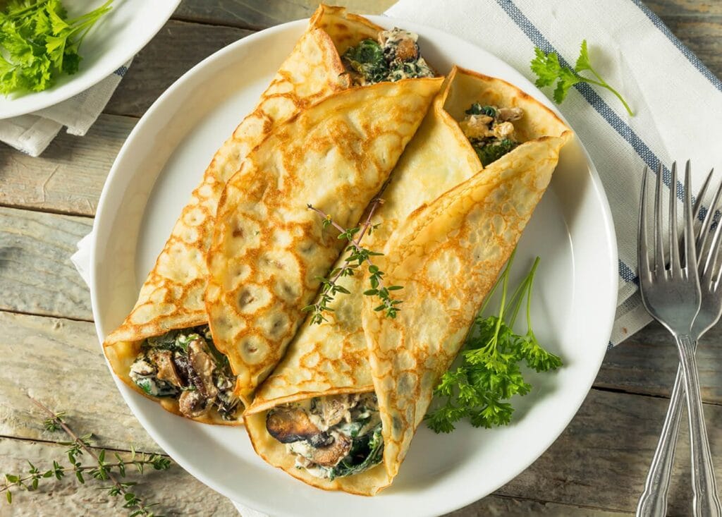 Crepes de pollo y champiñones
